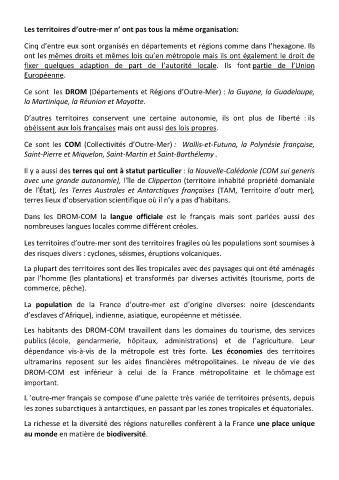 Les territoires d’outre-mer n’ ont pas tous la même organisation: