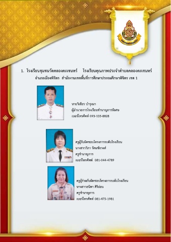 1. โรงเรียนชุมชนวัดคลองคะเชนทร์ โรงเรียนคุณภาพประจ าต าบลคลองคะเชนทร์