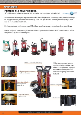 fra byggebranchen, industrispildevand og slam. SPT producerer pumper, der kan pumpe helt
