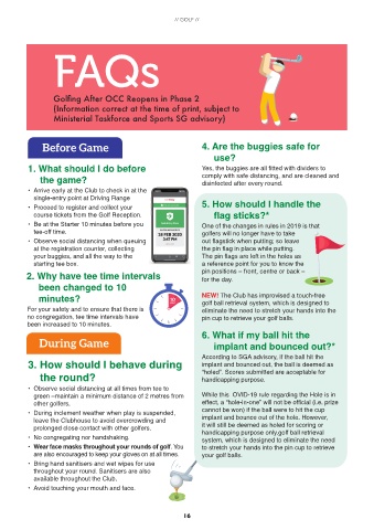 • Observe social distancing when queuing out flagstick when putting; so leave