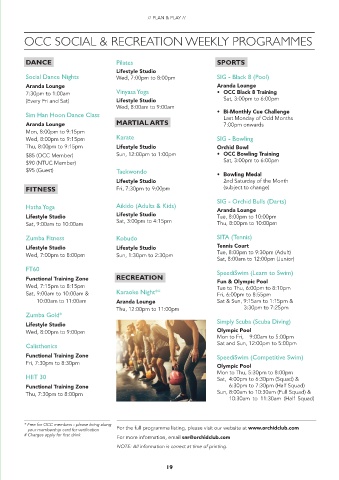 OCC SOCiAL & RECREATiON WEEKLy pROGRAMMES