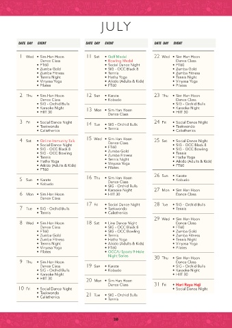 17 Fri • Social Dance Night 28 Tue • SIG - Orchid Bulls