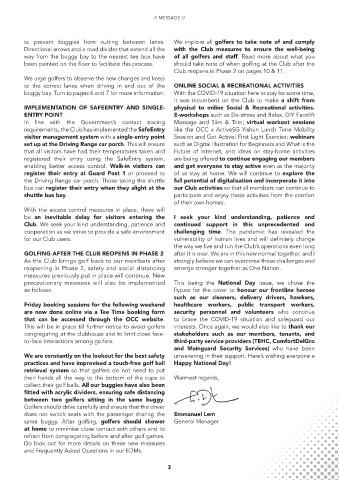 Club reopens in Phase 2 on pages 10 & 11.