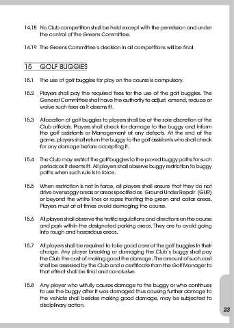14.12 In competitions extending over mor e than one day, the Gr eens 15.1 The use of golf buggies for play on the course is compulsory.