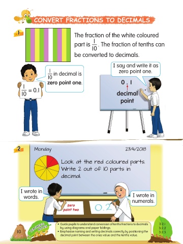 TEACHER’S • Guide pupils to understand conversion of tenths fractions to decimals 3.2.2