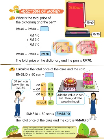 • Emphasise that the decimal point between the ringgit and sen must be 23