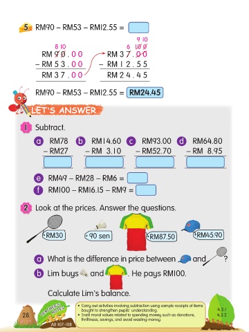TEACHER’S • Carry out activities involving subtraction using sample receipts of items 4.3.1