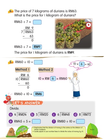 TEACHER’S • Emphasise that the division of money is the same as the division of 4.5.1