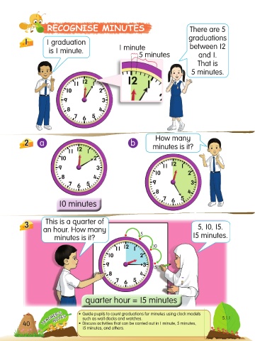 TEACHER’S • Guide pupils to count graduations for minutes using clock models 5.1.1