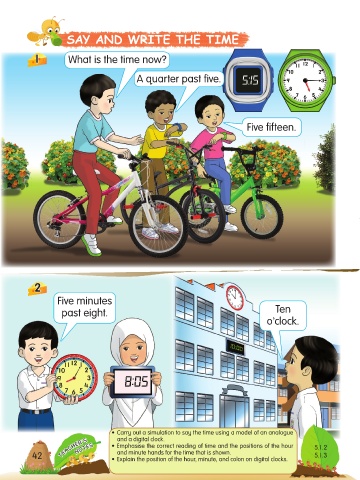 TEACHER’S • Emphasise the correct reading of time and the positions of the hour 5.1.2