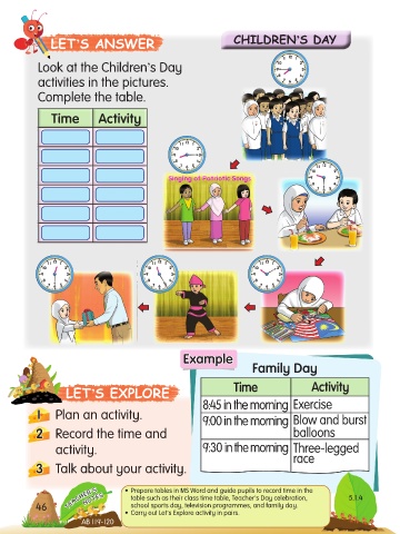 TEACHER’S • Prepare tables in MS Word and guide pupils to record time in the 5.1.4