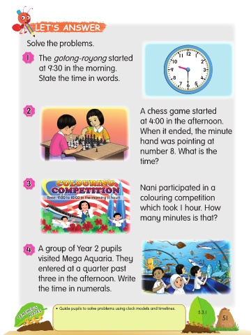 TEACHER’S • Guide pupils to solve problems using clock models and timelines. 5.3.1 51 51