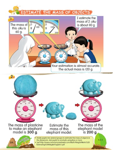 TEACHER’S • Divide pupils into several groups to estimate the mass of objects in 6.2.3