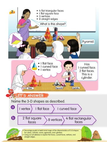 TEACHER’S • Encourage pupils to build mind maps of the characteristics of 3-D shapes 7.1.1