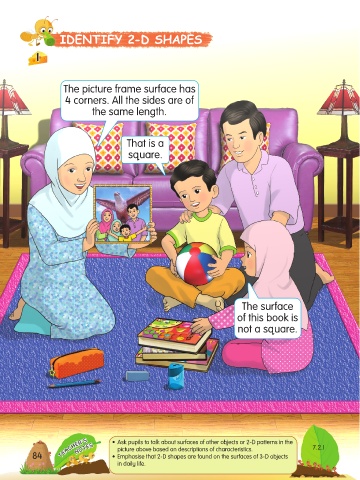 84 • Emphasise that 2-D shapes are found on the surfaces of 3-D objects