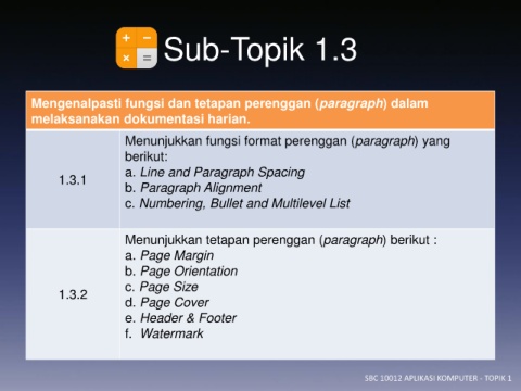 SBC 10012 APLIKASI KOMPUTER - TOPIK 1