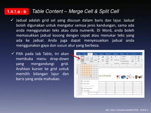 1.4.1.a - b Table Content – Merge Cell & Split Cell