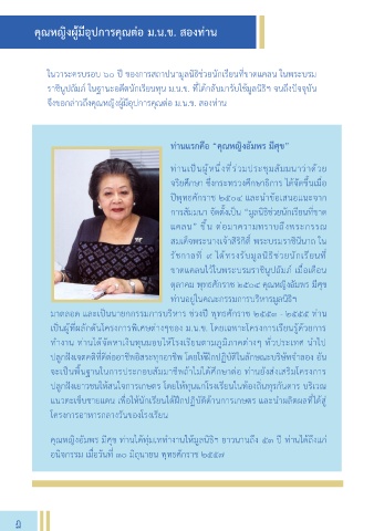 คุณหญิงอัมพร มีศุข ท่านได้ทุ่มเทท างานให้มูลนิธิฯ ยาวนานถึง ๕๓ ปี ท่านได้ถึงแก่