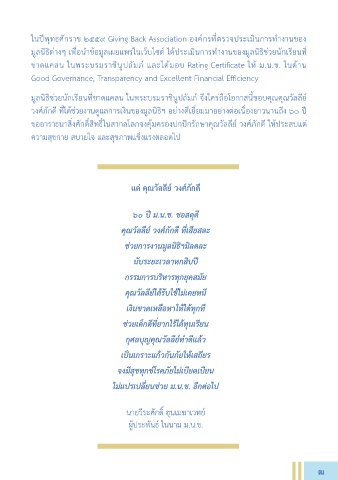 วงศ์ภักดี ที่ได้ช่วยงานดูแลการเงินของมูลนิธิฯ อย่างดีเยี่ยมมาอย่างต่อเนื่องยาวนานถึง ๖๐ ปี