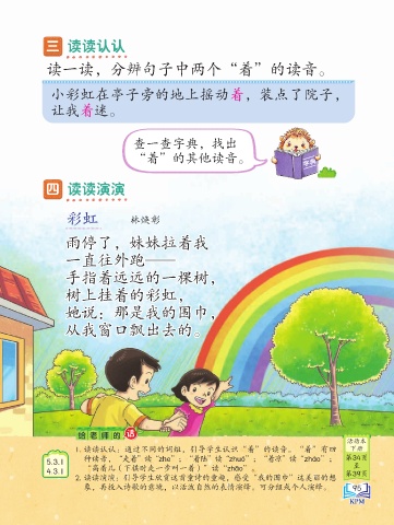 5.3.1 种读音,“走着”读“zhe”;“着陆”读“zhuó”;“着凉”读“zháo”; 第34页