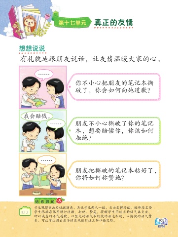 美。可让学生想出更多情景来进行这三种口语交际。 105