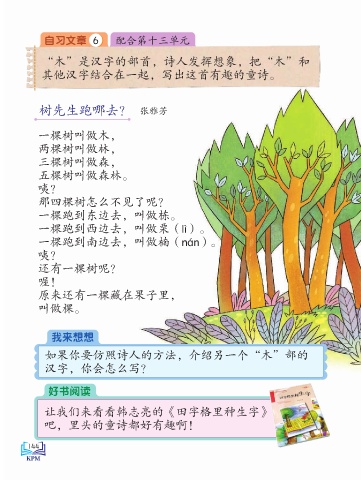 “木”是汉字的部首,诗人发挥想象,把“木”和