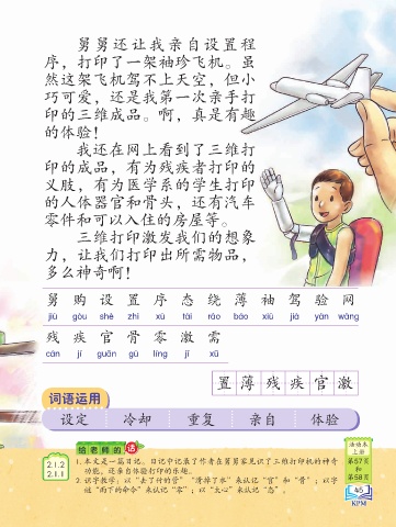 2.1.2 1. 本文是一篇日记。日记中记录了作者在舅舅家见识了三维打印机的神奇 第57页