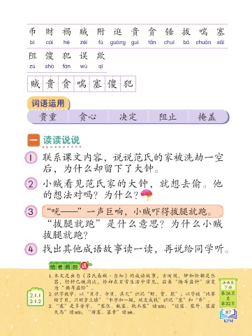2.1.1 2. 识字教学:以“贝才、今贝、其欠”识记“财、贪、欺”;以字谜“比赛 第26页