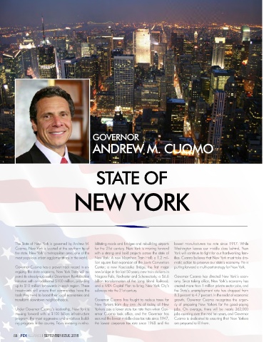 The State of New York is governed by Andrew M. bilitating roads and bridges and rebuilding airports lowest manufacturers tax rate since 1917. While