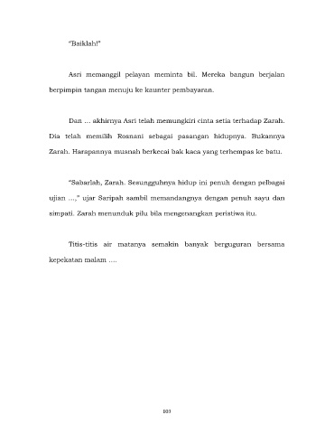 “Sabarlah, Zarah. Sesungguhnya hidup ini penuh dengan pelbagai