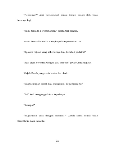 “Puncanya?” Asri mengangkat muka lemah seolah-olah tidak