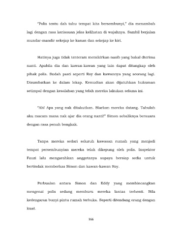 “Polis tentu dah tahu tempat kita bersembunyi,” dia menambah