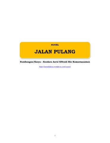 NOVEL JALAN PULANG Sumbangan/Karya : Saudara Asrul Effendi Bin Kamaruzzaman https://lamanbahasa.wordpress.com/cerpen/ 1