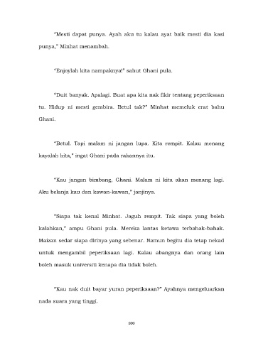 “Duit banyak. Apalagi. Buat apa kita nak fikir tentang peperiksaan