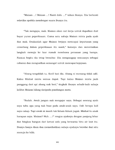 “Maizan …! Maizan …! Nanti dulu …!” tahan ibunya. Dia berhenti