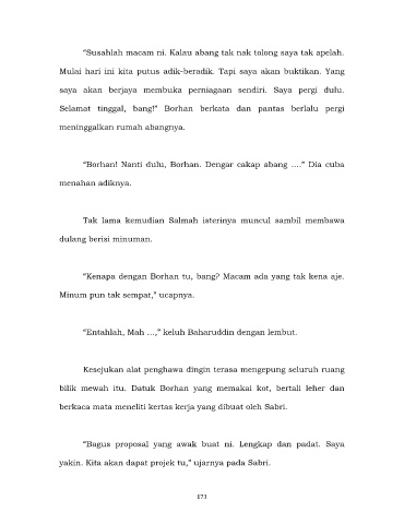 Selamat tinggal, bang!” Borhan berkata dan pantas berlalu pergi