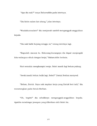 “Awak masih belum balik lagi, Sabri?” Datuk Borhan menyoal.