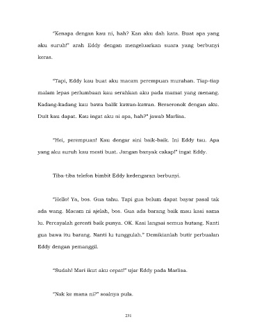 “Sudah! Mari ikut aku cepat!” ujar Eddy pada Marlisa.