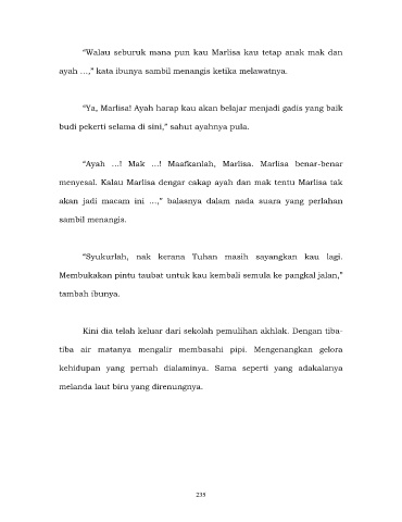 “Ayah …! Mak …! Maafkanlah, Marlisa. Marlisa benar-benar