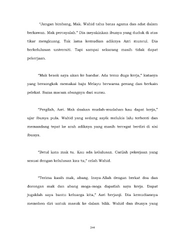 “Pergilah, Azri. Mak doakan mudah-mudahan kau dapat kerja,”