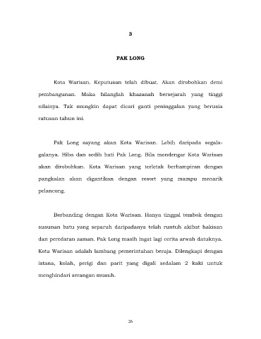 galanya. Hiba dan sedih hati Pak Long. Bila mendengar Kota Warisan