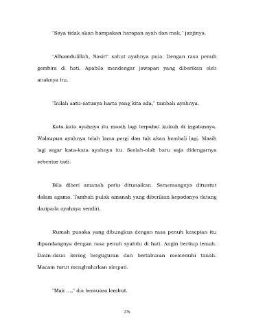 "Alhamdulillah, Nasir!" sahut ayahnya pula. Dengan rasa penuh