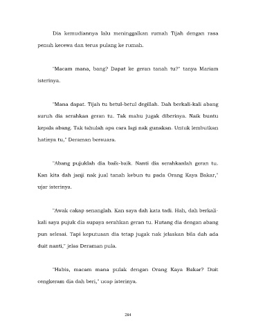 "Macam mana, bang? Dapat ke geran tanah tu?" tanya Mariam
