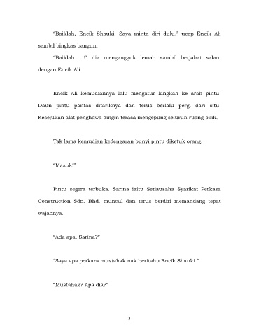 “Baiklah, Encik Shauki. Saya minta diri dulu,” ucap Encik Ali
