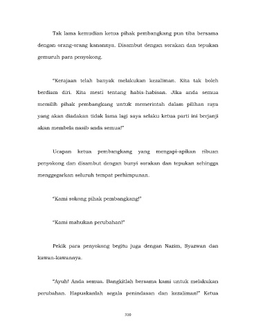 perubahan. Hapuskanlah segala penindasan dan kezaliman!” Ketua