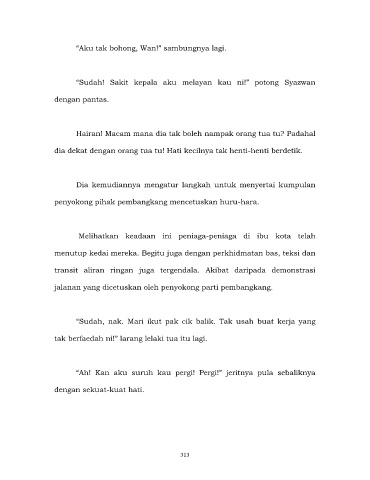 “Sudah, nak. Mari ikut pak cik balik. Tak usah buat kerja yang