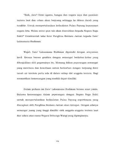 “Baik, dato’! Demi agama, bangsa dan negara saya dan pasukan