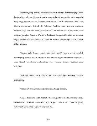 “Nak jadi askar macam ayah!” aku lantas menjawab dengan penuh