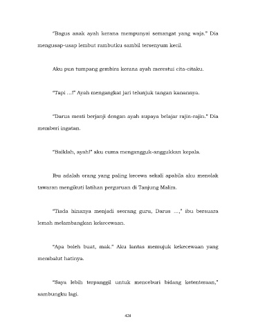 “Apa boleh buat, mak.” Aku lantas memujuk kekecewaan yang
