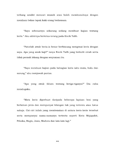 keris.” Aku akhirnya berterus-terang pada Encik Talib.